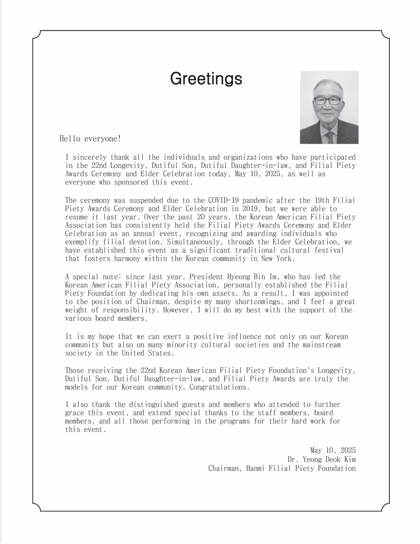In this pivotal moment, the Hanmi Chunghyo Association presents the values of ‘Chun’ (Loyalty) and ‘Hyo’ (Filial Piety) as the solution for our times.